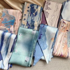 店主自留!手绘款中国风细窄长条小丝巾女春夏锁骨薄围巾百搭领巾