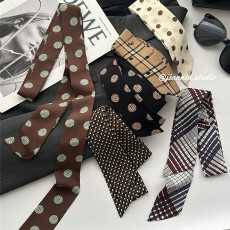 复古时尚波点长形丝巾女春秋时尚百搭装饰领结手打领巾细窄飘带潮