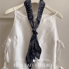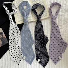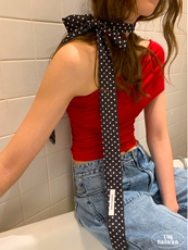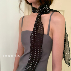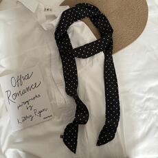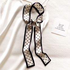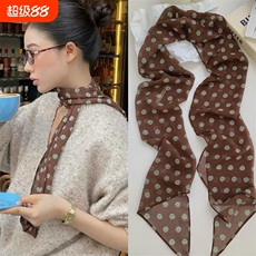 郑佰万 复古时髦波点长条丝巾韩国ins细窄飘带Y2K辣妹绑包领巾女
