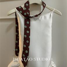 feytiy 高级感时髦白色波点飘带复古长条丝巾细窄绑发领巾腰带韩