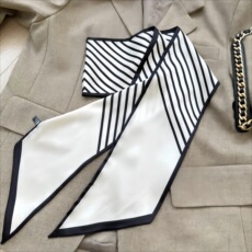 黑白条纹2025新款高级感长条形小丝巾女细窄搭配衬衫夏季飘带绑包