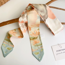 郑佰万 莫奈花园 春秋丝巾女高智感细窄飘带时髦韩系氛围感小长巾