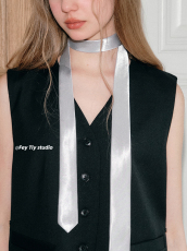 feytiy 定制个性细窄领带潮酷丝巾纯色百搭黑色飘带领巾辣妹Y2K帅