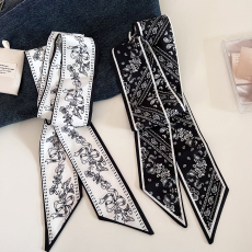 郑佰万 长条波点丝巾女春夏新款百搭玫瑰花围脖飘带细窄高级感潮
