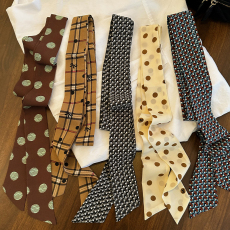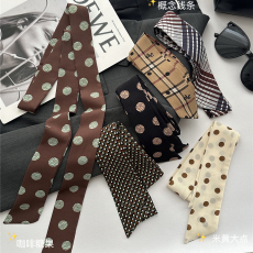 高级感百搭波点丝巾印花高级棕色配饰2025新款发带绑发细窄长条