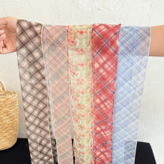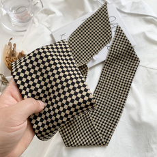 法式格子小丝巾女春秋夏季细窄长条领巾韩版百搭ins潮飘带绑发带