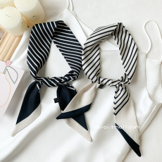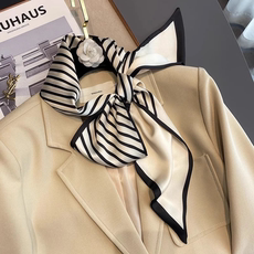 OL法式条纹小丝巾长条方巾女百搭春秋季细窄装饰衬衫飘带绑包绑发