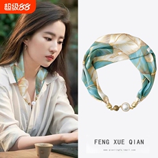 春秋薄款护颈丝巾女夏季遮脖子磁吸扣小长条围巾装饰带窄项链珍珠