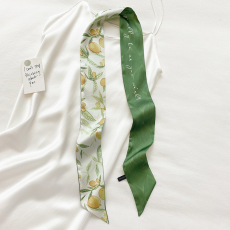 小溜家春季百搭绿色丛林仿真丝丝巾女长条领巾绑包包飘带细窄围巾