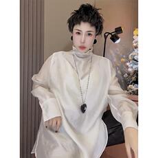大码气质设计感纯色小衫上衣女2025春季新款时尚宽松长袖立领衬衫