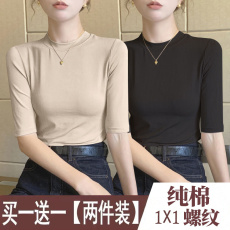 单/两件装 春夏新款正肩纯色小立领打底衫女内搭外穿五分袖上衣女