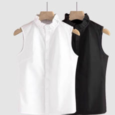 立领无袖衬衫女春夏新款百搭法式木耳边气质内搭叠穿衬衣背心上衣