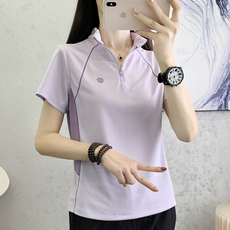 立领天丝罗马短袖T恤女2025夏季宽松时尚洋气园服工装广场舞上衣