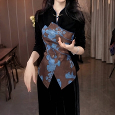 时尚百搭立领国风丝绒小衫女2025秋季新款气质显瘦新中式长袖上衣