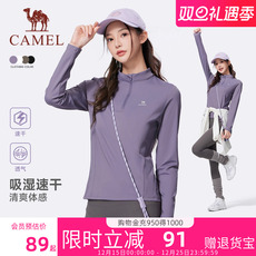 骆驼运动上衣女长袖 紫色速干衣春夏季立领健身瑜伽服防晒长袖T恤