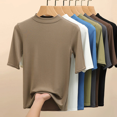 冰丝针织衫女短袖修身夏季立领线衣半高领紧身黑色半袖上衣打底衫