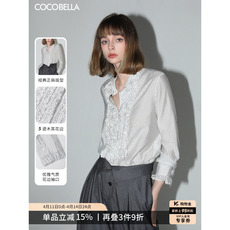 COCOBELLA简约时尚设计感条纹长袖衬衫女通勤立领休闲上衣SR3080