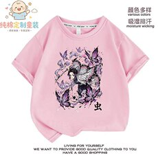 鬼灭之刃蝴蝶卡通夏季男女款小中大童纯色短袖纯棉圆领宽松t恤潮