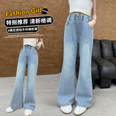 女童春季裤子2026新款儿童烫钻喇叭裤大童牛仔裤春装女款春款韩系