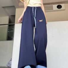 猫咪印花休闲裤子女款秋天bf慵懒风宽松初中生遛弯阔腿裤小狗长裤