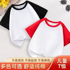 2026爆款潮流纯色儿童拼接t恤短袖夏季中大童男女款纯棉上衣童装