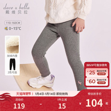 戴维贝拉女童加绒裤冬季儿童冬装裤子宝宝加厚打底裤黑色棉裤童装