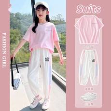 女童装夏装套装2023新款中大童洋气网红女孩运动休闲阔腿裤两件套