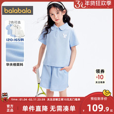 巴拉巴拉女童套装中大童运动polo衫夏装2025新款童装儿童宝宝衣服