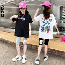 女童套装夏季新款短袖短裤套装儿童中大童夏装洋气卡通印花两件套