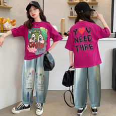 儿童套装女童裤子套装夏装洋气牛仔裤薄款阔腿裤中大童高腰宽松裤