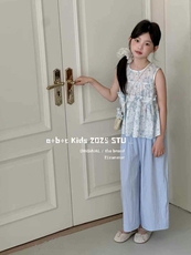 女童套装2025新款夏装中大童棉布背心阔腿裤女孩碎花娃娃衫两件套