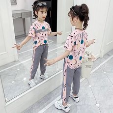 女童夏装运动休闲套装童装新款中大童两件套短袖时尚洋气网红