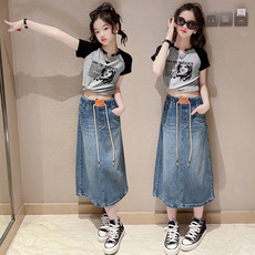 女童夏装套装2025新款儿童洋气时髦短袖t恤中大童夏款牛仔裤套装