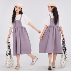 韩版中大童女童夏装大码宽松背带裙两件套短袖连衣裙套装