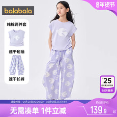 巴拉巴拉女童短袖套装中大童运动两件套儿童T恤2025夏装新款童装