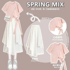 女童夏装中大童设计感短款不规则短袖时髦洋气儿童阔腿裤两件套装