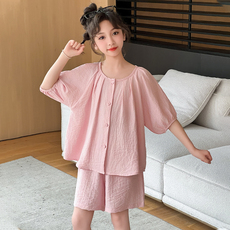2024新款儿童家居服睡衣薄款夏季女童双层纱布纯棉时髦空调服童装