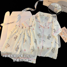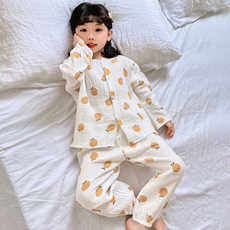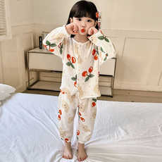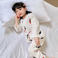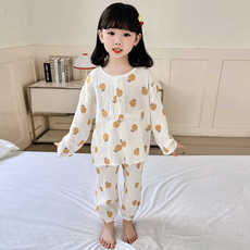 女童纯棉长袖夏季薄款儿童款睡衣双层棉纱印花开衫休闲家居服套装