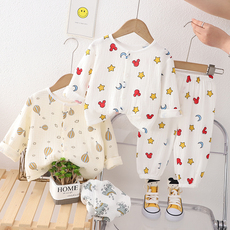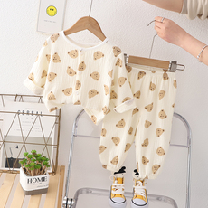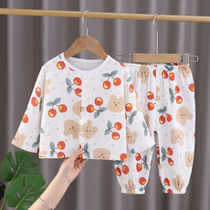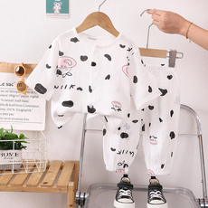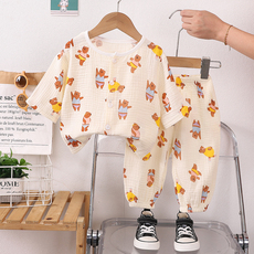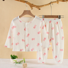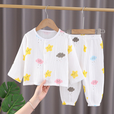 儿童双层棉纱布睡衣婴儿童装宝宝春秋夏季家居服男女童薄款空调服