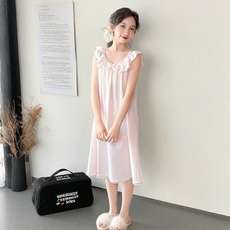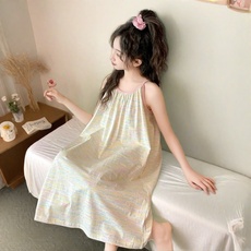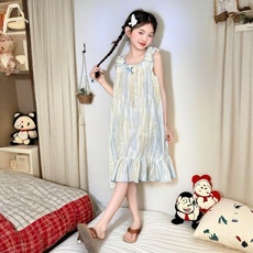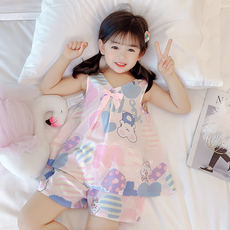 女孩睡裙夏季网红冰丝无袖女童睡裙宽松薄款睡衣中大童空调服
