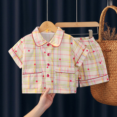 女童睡衣套装纯棉夏季薄款2025新款女孩格子居家服儿童短袖两件套