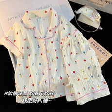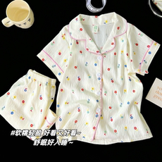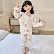 儿童睡衣夏季薄款双层棉纱布男女童家居服开衫洋气印花休闲空调服