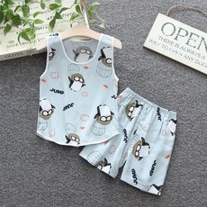 宝宝棉绸睡衣夏季儿童薄款绵绸背心套装男童女童小孩夏装无袖童装