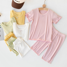 夏季服套装花边可丝50莫代尔家居薄款支优七分袖女童睡衣空调