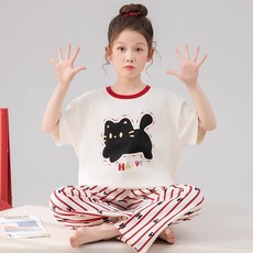 卡通儿童睡衣女童夏季短袖云朵棉薄款小女孩中大童可爱家居服套装