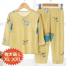 棉绸睡衣服薄款七分袖宝宝家居服夏季套装儿童半袖男童女童空调