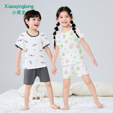小青龙兰精莫代尔男童女童薄款短袖短裤套装夏季儿童睡衣家居服