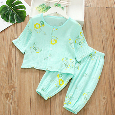 儿童纯棉夏季家居服宝宝纱布七分袖睡衣女小童A类薄款空调服套装