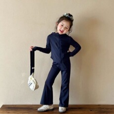 2025春秋季新款韩版女童时尚百搭连帽外套洋气喇叭裤运动宝宝套装