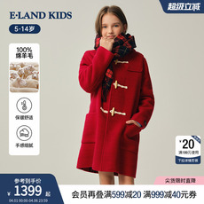 【100%绵羊毛】eland kids衣恋童装女童毛呢大衣秋冬男童连帽外套